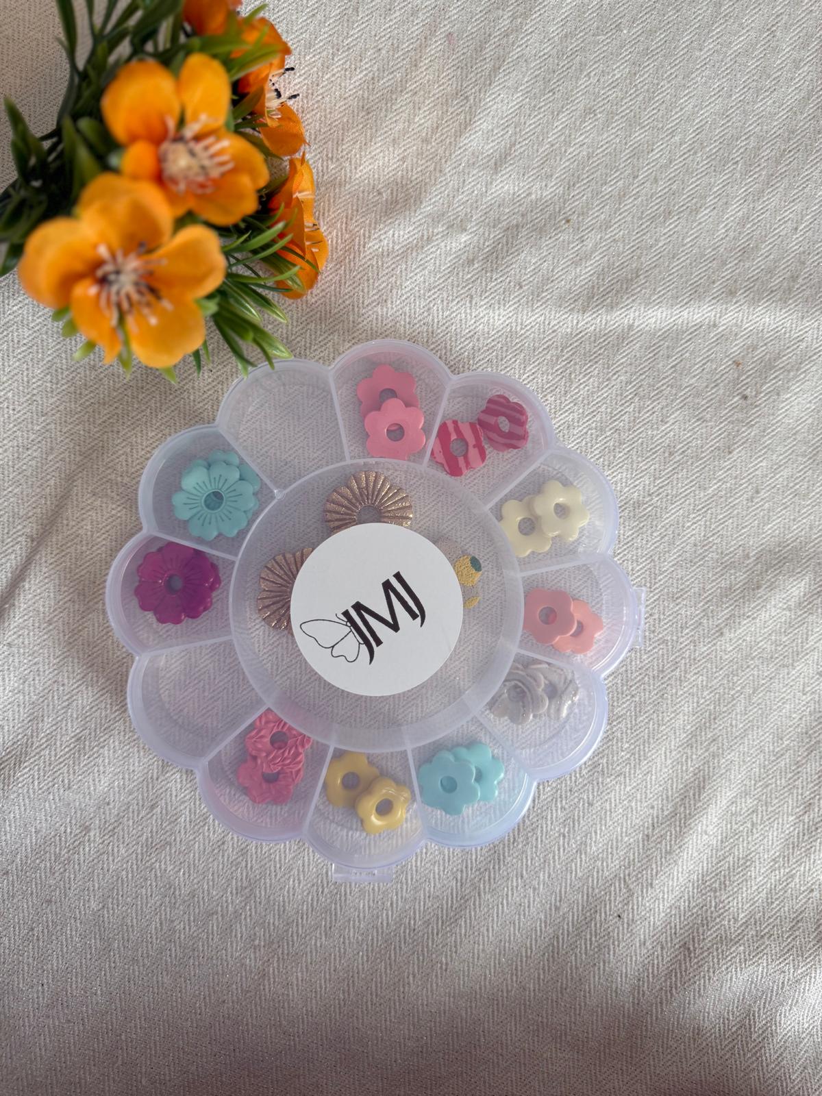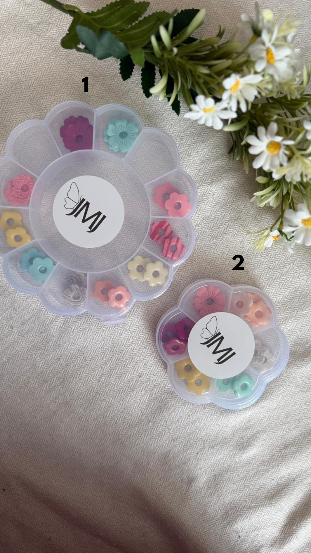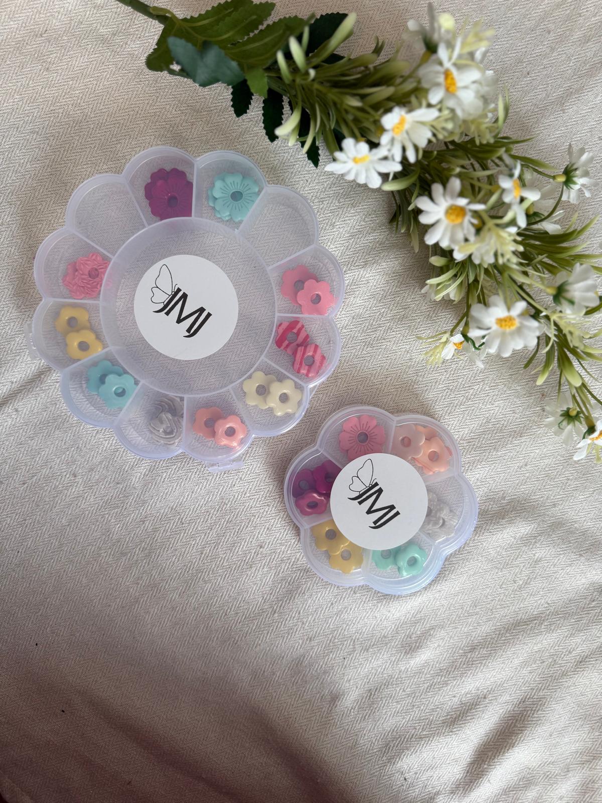 Organisez vos créations avec style grâce aux boîtes de rangement JMJ en forme de fleur ✨. Disponibles en deux formats (1️⃣ grand modèle et 2️⃣ petit modèle), elles sont idéales pour conserver vos pampilles artisanales et vos bijoux en acier inoxydable bien protégés et joliment présentés.