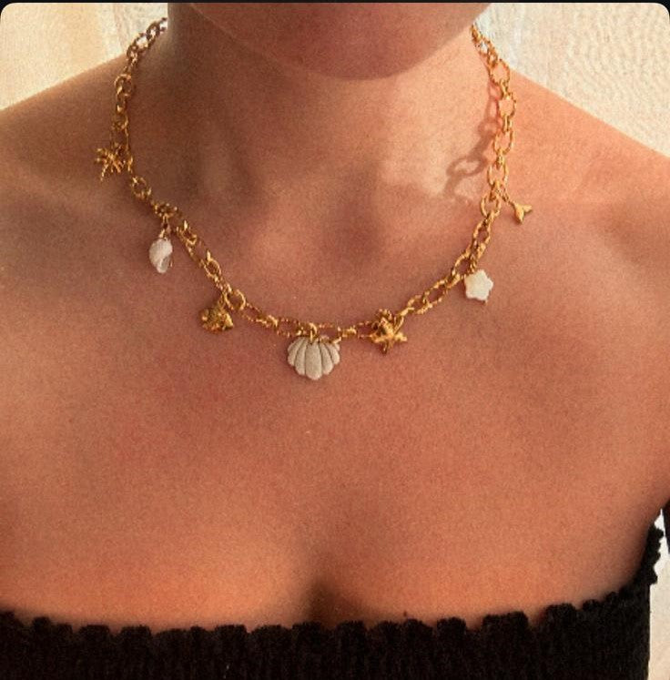 Ce collier en acier inoxydable doré capture toute la légèreté et l’éclat de la saison estivale.