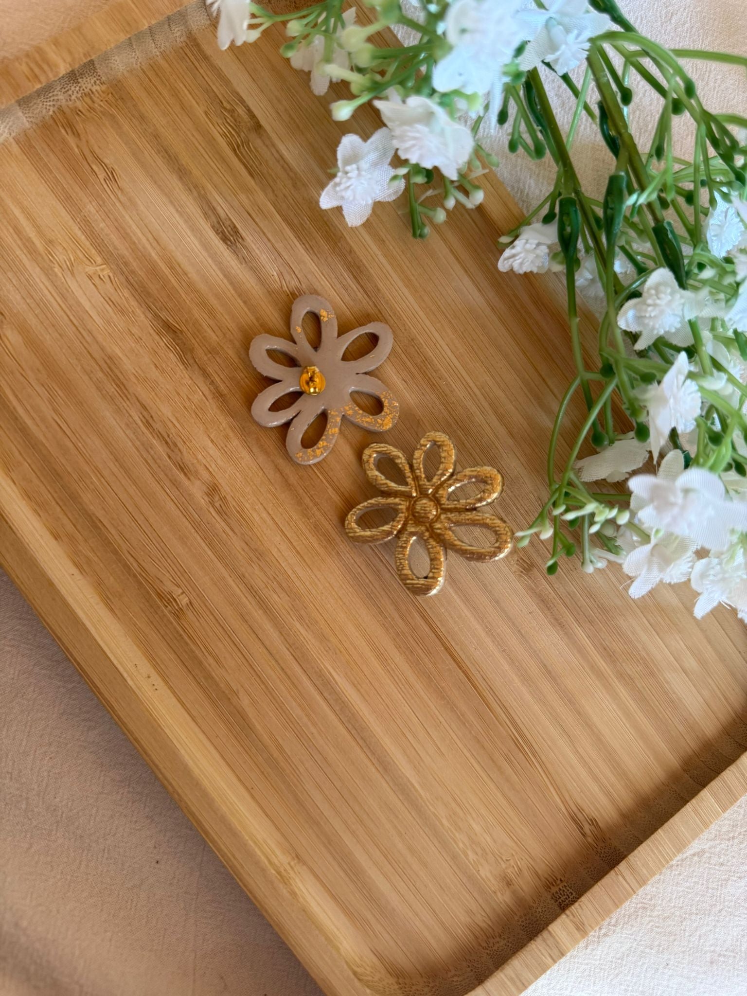 Apportez une touche de douceur et d’élégance à vos tenues avec ces boucles d’oreilles en forme de fleur, réalisées à la main en pâte Fimo.